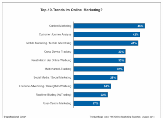 Eine Experten-Umfrage von eprofessional im Vorfeld der dmexco 2014 ergab, dass Content Marketing nach wie vor der wichtigste Trend im Online-Marketing ist.