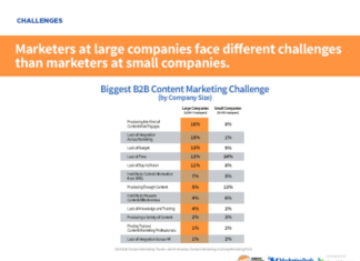 Beim Thema Herausforderungen fallen die Unterschiede zwischen großen und kleineren B2B Unternehmen in den USA deutlicher ins Gewicht als bei anderen Befragungspunkten.