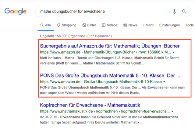 In Deutschland werden noch Bücher für Schüler auf Position 1 und 2 angezeigt: