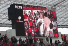 1. Halbzeit an: Das Publikum wird gefilmt, wie es auf die Ergebnisse aus den anderen...