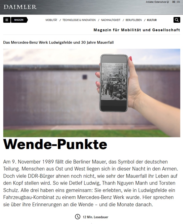 Daimler rückt auch gesellschaftliche Themen wie den Mauerfall in den Fokus: