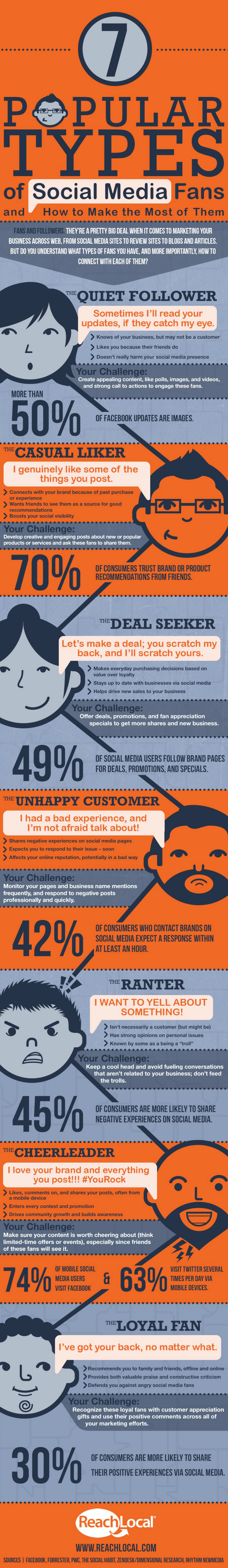 Die kalifornische Online-Marketingagentur Reach Local hat eine spannende Infografik veröffentlicht: Sie gibt Antwort auf die Frage, ob sich Facebook-Fans in unterschiedliche Gruppen unterteilen lassen und hat wertvolle Tipps zur Nutzung dieses Wissens durch gekonntes Social Media Marketing.