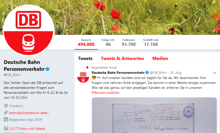 Twitter ist einer der wichtigsten Kanäle für die Deutsche Bahn.