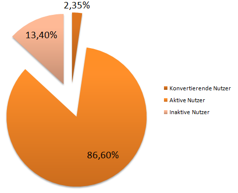 Last but not least gibt es die konvertierenden Nutzer als Teilmenge der aktiven Nutzer. Sie haben Adressdaten abgegeben, eine Bestellung oder Buchung aufgegeben – was auch immer das definierte Konversions-Ziel der jeweiligen Aktion war.