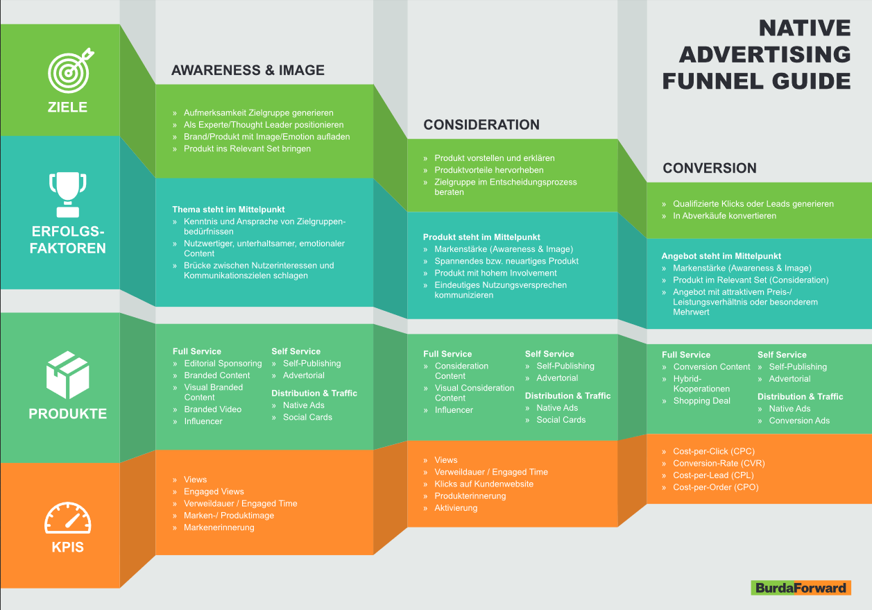 Vor lauter Awareness, Consideration und Conversion verlieren Sie den Überblick? Vielleicht kann Ihnen unser Funnel Guide weiterhelfen. Sehen Sie selbst, welche Produkte und KPIs für welche Phase relevant sind und wie die Erfolgsfaktoren dabei aussehen.